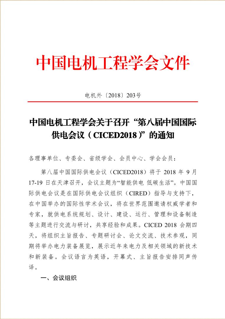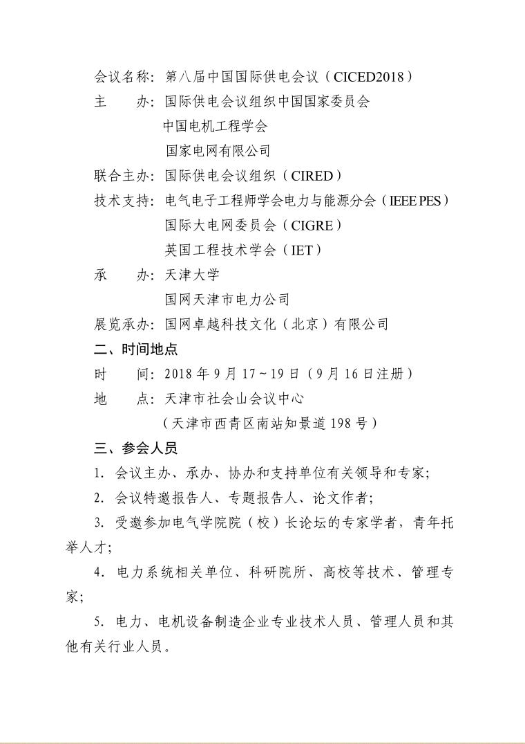 由国际供电会议组织中国国家委员会(中国电机工程学会、中国电工技术学会、中国可再生能源学会发起成立)、中国电机工程学会、国家电网有限公司主办的第八届中国国际供电会议将2018年9月17-19日在天津召开,请相关人士报名参加!