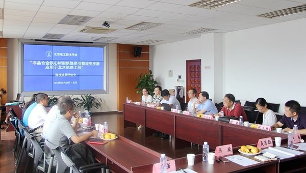 2018年8月5日,北京电工技术学会受会员单位卧龙电气集团北京华泰变压器有限公司委托,组织召开“非晶合金铁心树脂绝缘牵引整流变压器应用于北京地铁工程”科技成果评价会。来自中国科学院电工研究所、北京市轨道交通运营管理有限公司、北京市地铁运营有限公司、北京市轨道交通建设管理有限公司、中铁第五勘察设计院集团有限公司的五位专家受邀组成专家评审组。北京科技社团服务中心拜世强老师、肖潇老师应邀参加了评价会。会议由中铁电气化勘测设计研究院副总工程师白雪莲主持。