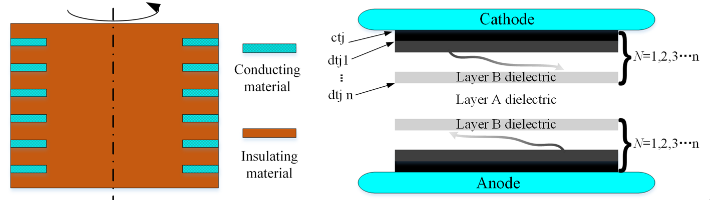 真空-固体复合绝缘广泛应用于脉冲功率、高功率微波、高能物理、航天和真空电气电子等领域,如Z-Pinch类似装置的轴向分层绝缘堆、直线感应加速器(LIA)类似装置的径向和轴向绝缘支撑结构、其它高能物理装置及电真空器件的固体绝缘支撑等,如图1所示。以脉冲功率装置为例,其所用真空-固体复合绝缘系统可抽象成两种典型绝缘结构,如图2所示。