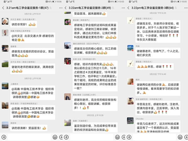 “科技成果鉴定培训+咨询”活动获得积极回应,来自中国电科院、中科院电工所、全球能源互联网研究院等知名院所,西安交通大学、哈尔滨工业大学、北京交通大学、天津大学、哈尔滨理工大学、北方工业大学、南京工程学院等重点高校,以及宁波东方电缆、保定天威保变、安徽华能电缆等行业企业单位的科研工作者以及其它全国学会相关业务人员140余位参加交流活动,并对我会组织开展鉴定服务工作给予较高认可和好评。