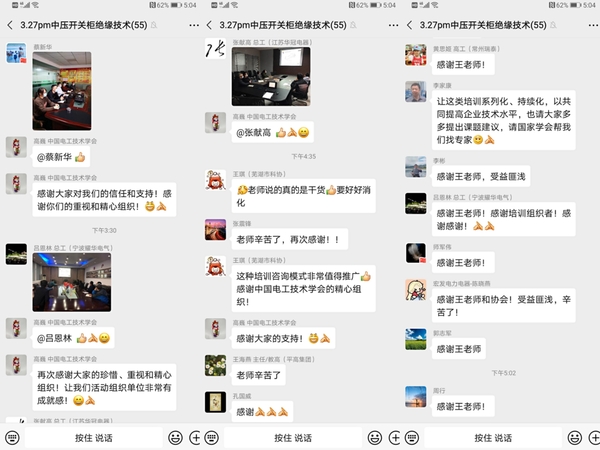 我会于3月13日举办的“输配电技术培训+咨询”(网络视频方式)活动之后,新老参会者们对王平教高的“中压开关柜绝缘技术”讲授充满期待,给予高度关注,很多单位高管和技术人员克服各种困难,“赶来”聆听专家讲授。王平教高根据30余年工作经验总结梳理的培训内容为企业科技创新和解决产品绝缘问题提供了清晰明确的现实指导和前瞻引领,受到活动参加人员由衷的好评和诚挚感谢,达到了非常好的学习交流效果。本次活动由我会咨询部主任高巍博士主持。在活动的策划组织实施过程中,得到了我会输变电设备专业委员会和宁波市电工电气行业协会的大力支持。