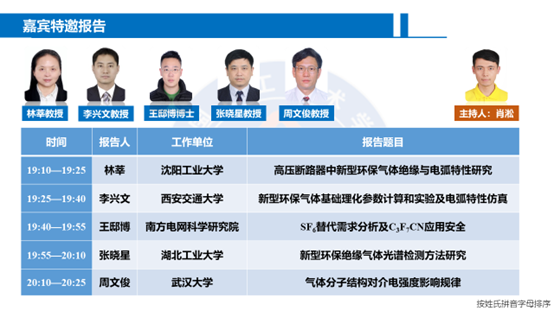 会议邀请5位专家针对环保气体研究中的电弧特性、电弧分解、安全性、检测技术以及分子优化设计等方面分别作了报告。