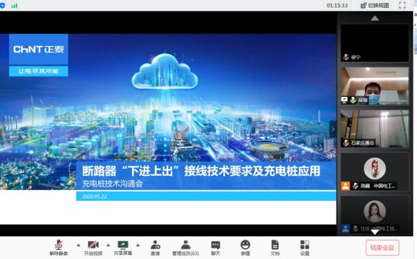 正泰集团技术人员题为“断路器‘下进上出’线技术要求及充电桩应用”的技术交流
