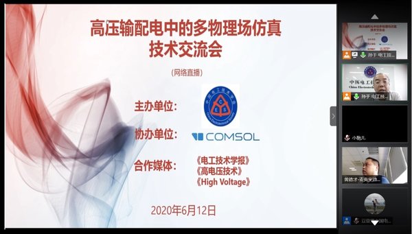 2020年6月12日下午14:00-17:00,高压输配电中的多物理场仿真技术(网络)研讨会成功召开。本次会议通过腾讯会议线上报告与讨论、微信群互动、哔哩哔哩视频直播相结合的形式召开,线上同时参与人数超过1.8万,活动取得了圆满成功。