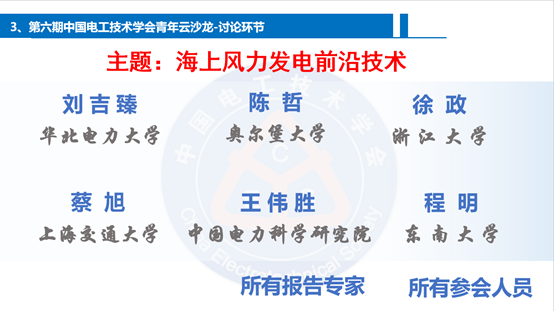 2020年7月12日晚18:30-22:00,中国电工技术学会第六期青年云沙龙成功召开。本次云沙龙聚焦“海上风力发电前沿技术”,由中国电工技术学会青年工作委员会与东南大学联合承办。会议采用腾讯会议线上报告与讨论、微信群互动、哔哩哔哩视频直播相结合的形式召开,3.8万人同时在线观看,线上参与和互动踊跃,活动取得了圆满成功。
