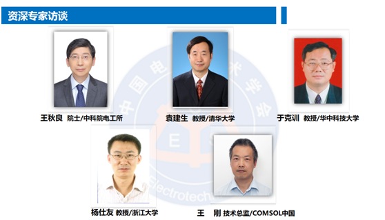在资深专家访谈环节,中科院电工所王秋良院士、清华大学袁建生教授、华中科技大学于克训教授、浙江大学杨仕友教授和COMSOL中国技术总监王刚博士等5位国内多物理场耦合领域的资深学者共同探讨了多物理场耦合技术在电气工程领域中的应用和挑战。王秋良院士从宏观和微观角度、对电磁装备器件多尺度、跨尺度、时间尺度等不同维度下探讨了极端条件下电磁装备多物理场仿真计算面临的科学问题和技术挑战,尤其强调应重视在极端条件下材料的等效和物性演化问题的研究,指引研究人员深入思考,开拓新的研究方向;袁建生教授阐述了电磁多物理场仿真的实际应用和科学问题之间的关系,以国家自然科学基金委发布的2020年度重大研究计划中的“极端条件电磁能装备科学基础”为例,指出应该将工作落到实处,脚踏实地,逐步凝练科学问题;于克训教授对铁磁型和空心型两种脉冲发电机的特点和应用进行了阐述,对多物理场耦合技术在脉冲发电机研究中的作用进行了分析,对关键技术进行了讨论;杨仕友教授以射频能量吸收系统和无人机自动巡检系统为例,分享了多场耦合技术的新应用,尤其是电磁场逆问题的应用,指出了需要关注系统的实时性、鲁棒性等问题;王刚总监就COMSOL软件的技术特点进行了阐释,介绍了软件未来新的发展动向,最后介绍将于下周推出的具有多物理场模型降阶功能的新版本。各位访谈专家分别结合自身经验,讨论了多物理场技术在电力系统以及极端条件下电工装备应用中面临的关键问题,为广大青年学者继续深入研究指明了方向。