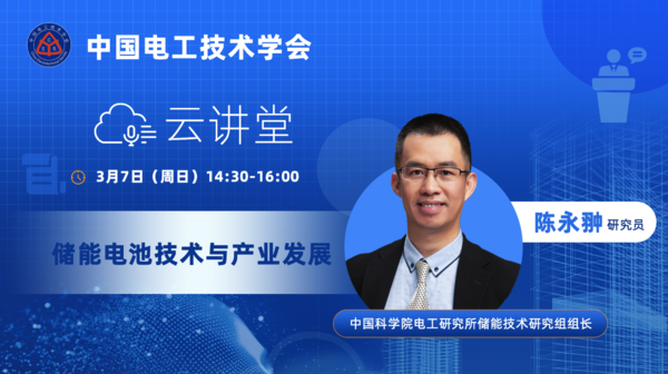 为使广大院校师生、工程技术人员以及社会各界人士深入学习了解储能电池技术及产业发展趋势,中国电工技术学会于2021年3月8日,采用网络直播方式开展了“中国电工技术学会云讲堂”第3场报告《储能电池技术与产业发展》,中国科学院电工研究所储能技术研究组组长陈永翀研究员作为主讲人为我们精彩开讲并进行答疑。