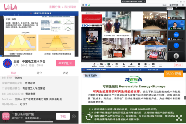 针对当前新冠疫情常态化管控的要求,我会积极借助新媒体方式进行科学技术推广宣传,采用腾讯会议+科界云平台+哔哩哔哩“中国电工技术学会直播间”三路联动,同步直播陈永翀研究员关于储能电池技术与产业发展的真知灼见,受到多家企业和广大师生的高度关注和欢迎,18000余人在线聆听并积极互动、收获满满。本次活动让广大参会代表全面了解到储能产业的发展现状与趋势,深刻感受到储能电池技术对人们生产生活带来的重大变革和美好愿景。