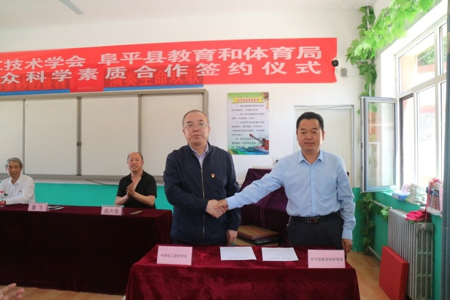 为了深入贯彻落实中国科协和河北省党史学习教育“我为群众办实事”的要求,充分发挥国家级学会服务地方发展、服务公众素质提高的资源优势,中国电工技术学会追寻党的十八大以来习近平总书记的“红色足迹”,以科普教育作为乡村科技振兴的切入点,普及电气工程知识、弘扬科学精神、营造创新氛围、振兴基层教育。6月5日,学会与河北省阜平县教育和体育局在阜平举行了助力群众科学素质提升合作签约仪式。中国电工技术学会李秦副理事长、韩毅秘书长、教育和体育局董飞副局长以及有关领导出席签字仪式。