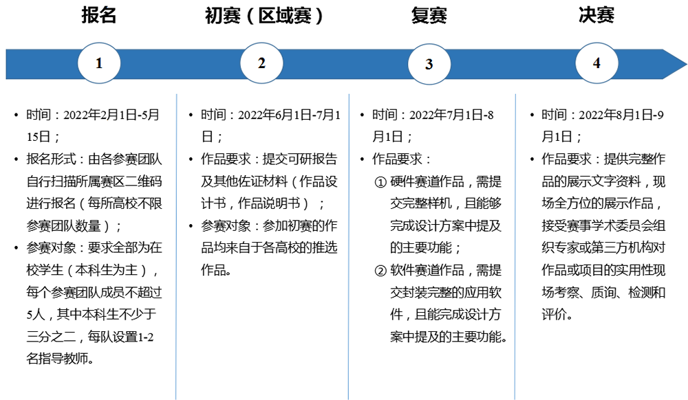 初赛其他事项:初赛作品提交截止时间、初赛答辩形式及时间见具体通知。各赛区负责单位、高校负责人负责具体事宜的解释及组织工作。