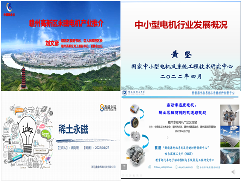 为推动落实习近平总书记视察赣州重要讲话精神,践行“双碳”国家战略,促进永磁电机领域科技交流与稀土资源高效开发利用,切实推动科技创新、成果转化及多领域产业升级,我会联合赣州市科学技术协会和赣州市赣县区人民政府,于2022年4月27日以视频会议方式,成功举办以“中国稀金谷,赣江‘双碳’行”为主题的“赣州永磁电机产业交流对接会”。对接会由中国电工技术学会咨询部主任刘淼和赣州市赣县区委常委、区人民政府副区长乔健共同主持。中国电工技术学会副秘书长高巍,赣州市科学技术协会党组书记、主席钟玉良,赣县区人民政府区长刘文彦等领导出席会议并致辞。