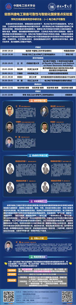 适值河北工业大学百廿华诞之际,省部共建电工装备可靠性与智能化国家重点实验室(EERI)联合中国电工技术学会举办《河北工业大学省部共建电工装备可靠性与智能化国家重点实验室学科方向发展系列空中研讨会》活动,旨在构建学术交流平台,促进学科方向发展。