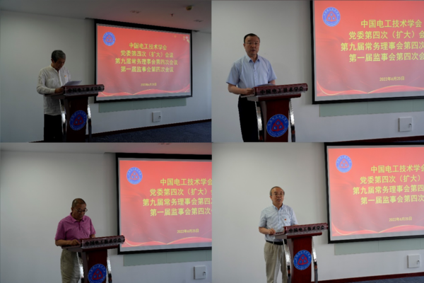 中国电工技术学会党委第四次(扩大)会议、第九届常务理事会第四次会议及第一届监事会第四次会议于2022年6月25日以线上线下相结合的方式成功召开。学会第九届理事会特聘顾问孙昌基出席会议,党委书记、理事长杨庆新,副理事长孙逢春、宋永华、徐殿国、荣命哲、李耀华、李秦、张文亮、贾利民、梁曦东、陈干锦、尹天文、管瑞良,监事长郝玉成,副监事长肖立业,监事刘杰、孙鹤旭,秘书长韩毅参加会议。副秘书长王志华、高巍、闫卓及工作总部各部门负责人列席会议。会议由党委书记、理事长杨庆新主持,51名常务理事及代表参加会议。
