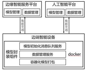 包括模型初始化服务、数据管理服务和容器化模型打包。边端侧模型封装应考虑模型管理与数据贯通要求,实现与边缘智能服务平台或人工智能平台等管理系统的数据贯通,实现模型初始化消息队列服务和数据管理服务,并采用Docker容器化方式进行封装,如下图所示。