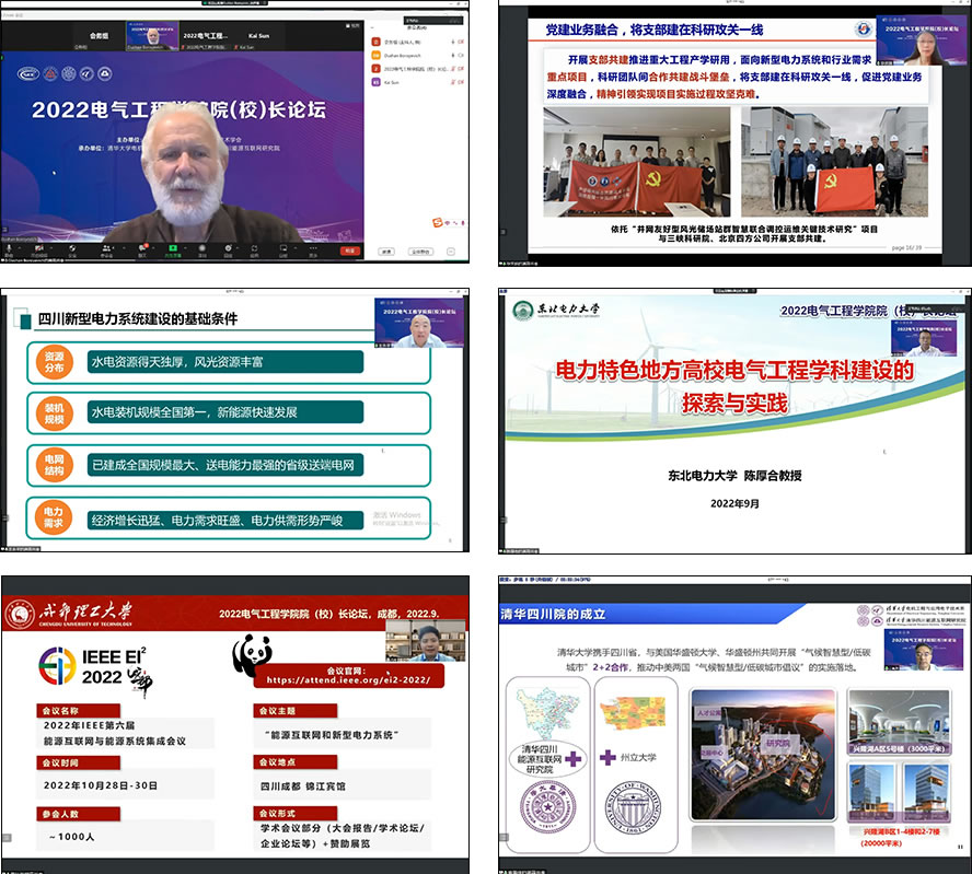 随后的主旨报告环节,美国弗吉尼亚理工学院副校长、美国工程院院士Dushan Boroyevich介绍了弗吉尼亚理工学院在电力电子领域的研究生教育培养工作基本情况与经验启示;华北电力大学党委常委、副校长毕天姝结合华北电力大学的典型案例与实践,分享了有组织科研攻关模式探索经验;四川省新型电力系统研究院院长王永平围绕建设思路、理论模型、探索实践等方面探讨了“多源互济”的四川新型电力系统建设思考;东北电力大学副校长陈厚合从东北电力大学电气工程学科建设举措入手,介绍了电力特色地方高校如何开展电气工程学科建设;成都理工大学党委常委、副校长黄琦交流了新兴信息支撑技术及其在新型电力系统中的应用相关研究成果;清华大学电机系主任、清华四川能源互联网研究院院长康重庆以清华四川能源互联网研究院为例,介绍了清华大学建设异地新型研发机构,支撑电气工程学科发展的经验探索。