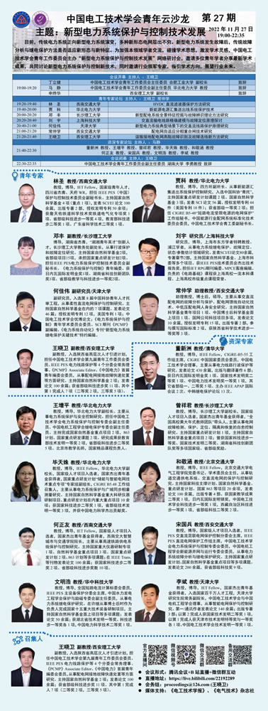 2022年11月27日下午19:00-22:35,与您相聚中国电工技术学会B站直播间、微信视频号、微信互动群和腾讯会议。