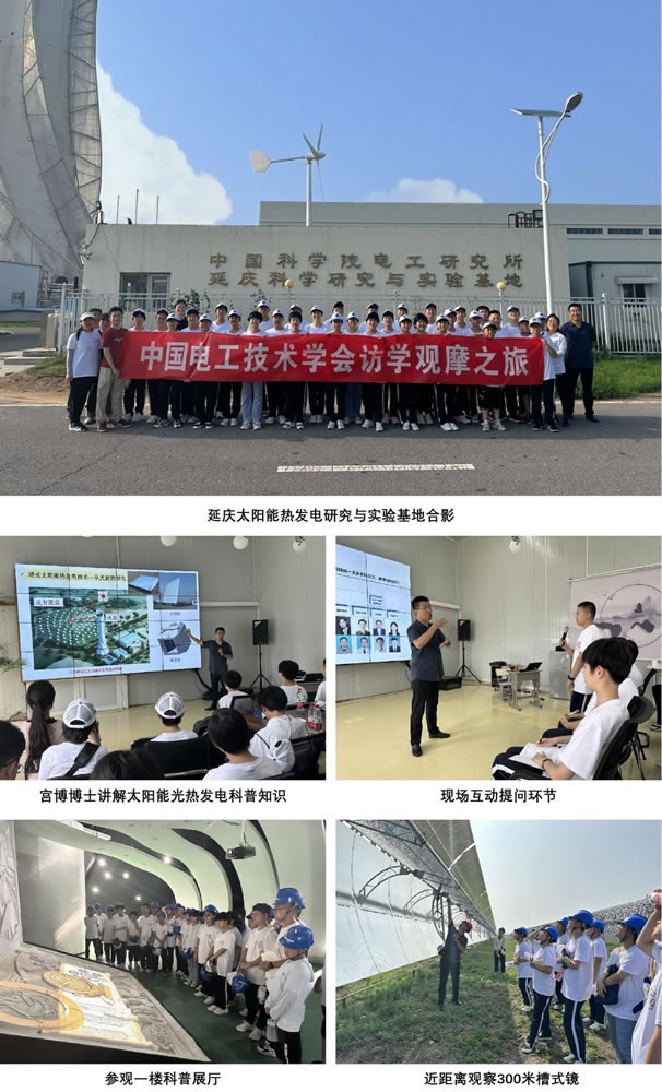太阳能热发电站什么样?太阳能热发电技术背后的原理是什么?带着这些问题,访学团探访延庆太阳能发电研究基地,共同见证太阳能热利用的秘密。中国科学院电工研究所宫博副研究员从实验基地的历史成就到太阳能热发电技术最新进展进行了深入浅出的介绍,并带领师生们近距离参观塔式太阳能集热器、定日镜场、槽式太阳能集热器、风洞实验台……一项项先进技术和设备令同学们惊叹不已。