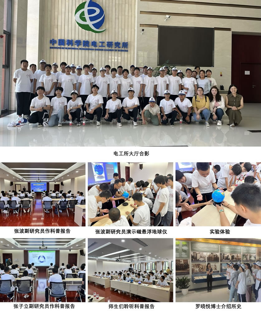 访学团到访中国科学院电工研究所参观学习并听取科普报告。同学们了解了中国科学院电工研究所的发展历程和卓越成绩,参观了三峡地下电站蒸发冷却水轮发电机、超高长代谢成像磁共振系统和亚洲首座1兆瓦延庆太阳热发电站等模型,生动精致的模型让同学们产生了浓厚的兴趣。张波副研究员和张子立副研究员分别以“探秘高速磁悬浮列车”和“福音or灾难——核能”为题展开分享,并通过风趣幽默的语言和动手小实验,调动同学们进行深入思考。