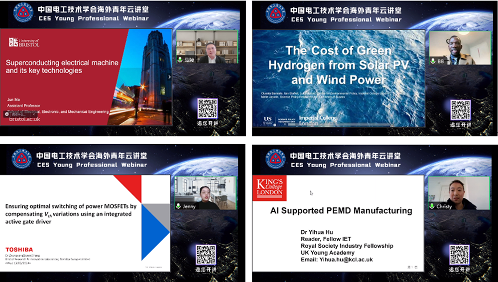 在报告分享环节,布里斯托大学的马骏助理教授作题为“超导电机及其关键技术的研究现状与挑战”的报告,帝国理工学院的Olusola Bamisile博士作题为“风光发电下制新能源氢成本”的报告,英国东芝欧洲有限公司布里斯托尔研究与创新实验室的冯正阳博士作题为“集成有源栅极驱动器及其对功率半导体的优化控制”的报告,伦敦国王学院胡义华教授作题为“基于人工智能的电力电子与电力传动智能制造”的报告。四位专家分别从电机、电力系统、电力电子、人工智能等方面分享了最新的研究进展、技术应用以及目前面临的技术瓶颈与挑战。