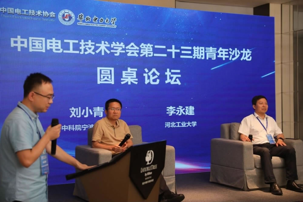 圆桌论坛环节由刘贺晨副教授主持,刘小青、李永建两位特邀资深专家围绕青年人才成长,材料-电气学科的交叉与融合以及前沿技术的推广情况进行了充分交流讨论,资深专家结合自身经历为青年学者们指点迷津。