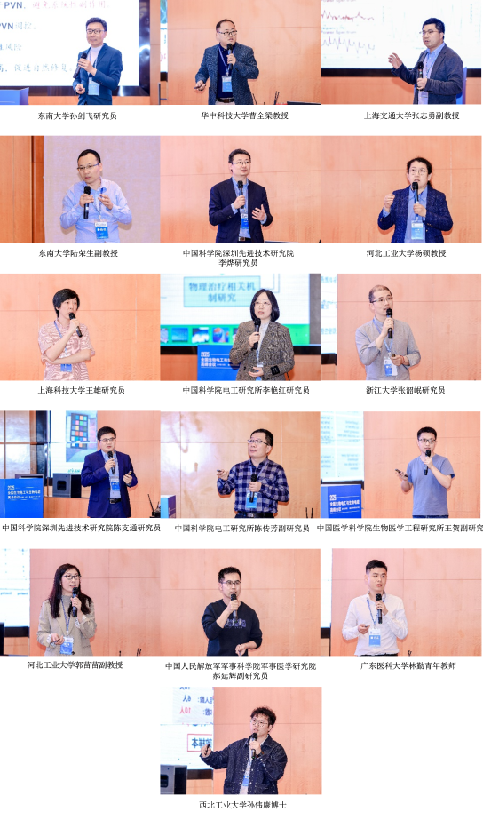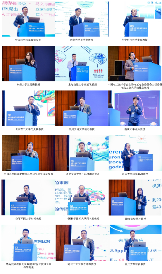 郑海荣院士、香港大学吴学奎教授、华中科技大学李亮教授、东南大学王雪梅教授、上海交通大学袁逖飞教授、河北工业大学徐桂芝教授、北京理工大学闫天翼教授、兰州交通大学逯迈教授、浙江大学谢灿教授、中国科学院合肥物质科学研究院张欣研究员、西安交通大学任冯刚副研究员、济南大学孙春辉副教授、空军军医大学付峰教授、中国科学技术大学邱本胜教授、浙江大学吴丹教授、华为技术有限公司鲲鹏HPC行业技术专家孙骞先生、河北工业大学许铮铧教授、重庆大学徐征教授受邀作了精彩的大会主会场报告,涵盖生物医学人工智能、临床超低场磁共振成像、整体充退磁技术、原位生物自组装磁纳米探针、神经振荡调控、生物电工发展历程、电磁辐射、调控与成像等研究领域和方向,为与会者带来了一场学术盛宴。