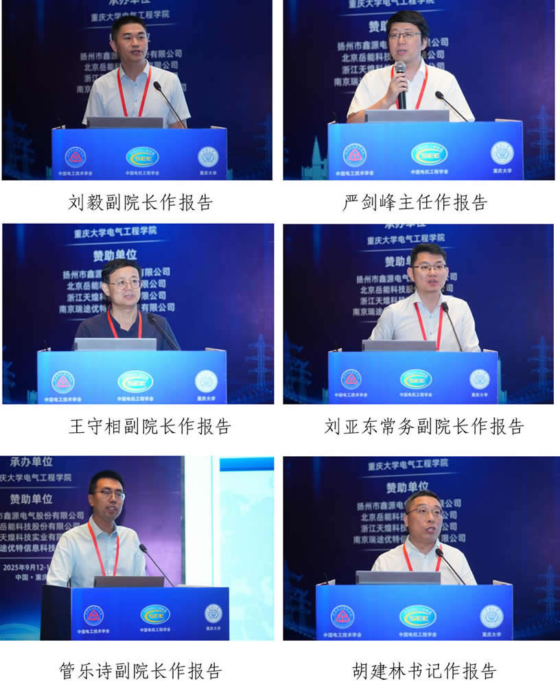 大会报告分别由重庆大学副校长李剑教授、西安交通大学电气工程学院院长杨旭教授、华北电力大学电气与电子工程学院院长齐磊教授、浙江大学电气工程学院副院长李虹教授分阶段主持。