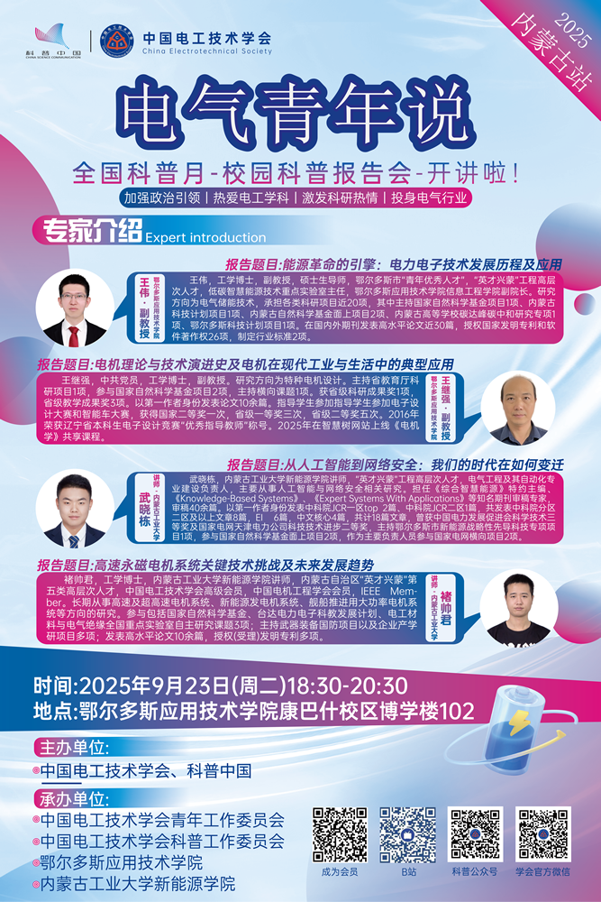 【“电气青年说”·内蒙古站】鄂尔多斯应用技术学院校园科普报告会9月23日开讲!
