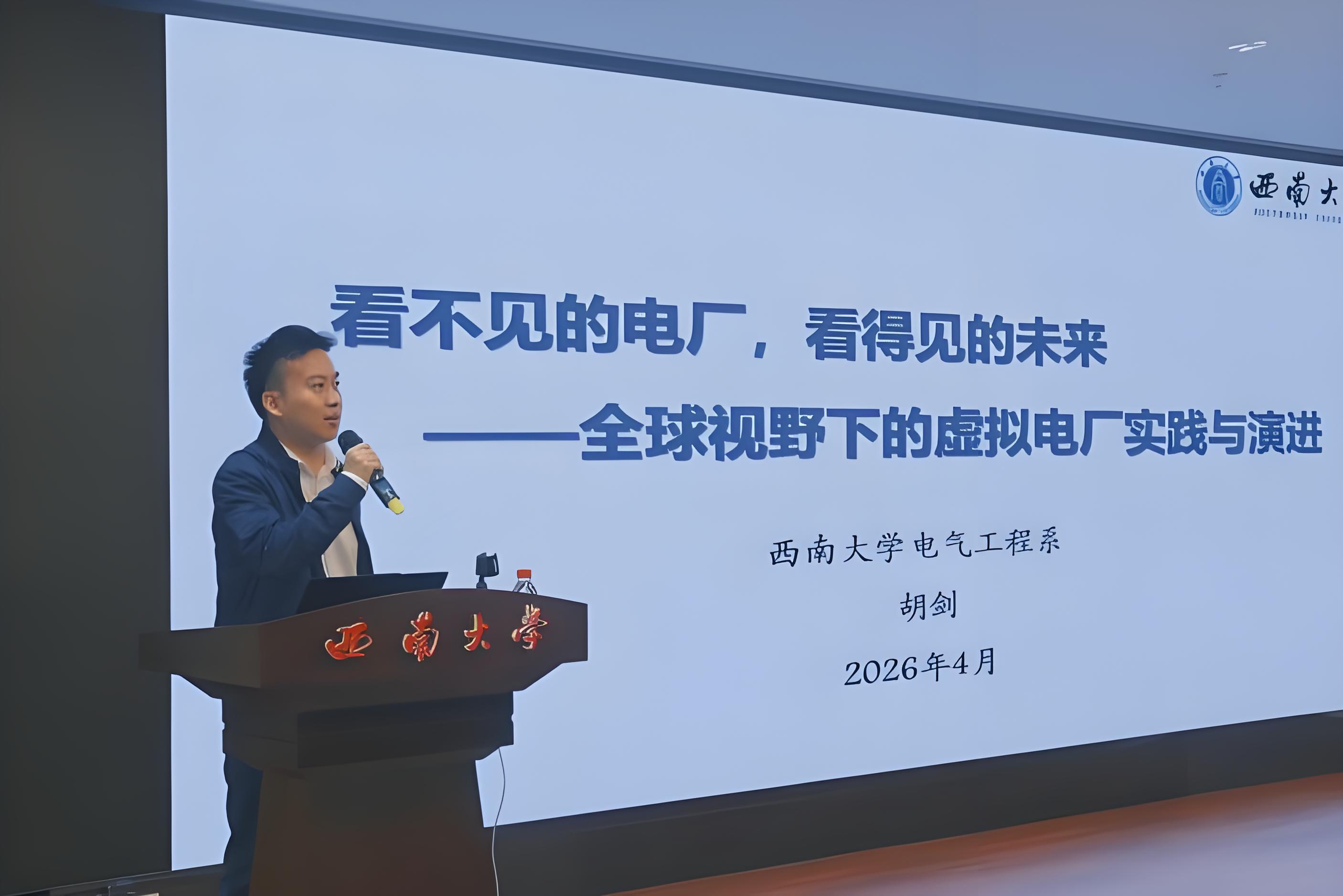 2026年4月16日,由中国电工技术学会与科普中国主办、西南大学承办的“电气青年说”校园科普报告会,在西南大学工科大楼A座511报告厅成功举行。本次活动由西南大学工程技术学院唐超教授担任召集人,邀请了南方电网超高压输电公司电科院正高级工程师邓军、贵州电网有限责任公司电力科学研究院正高级工程师李波、南方电网超高压输电公司贵阳局正高级工程师吕刚和西南大学工程技术学院胡剑副教授作专题报告与现场交流。