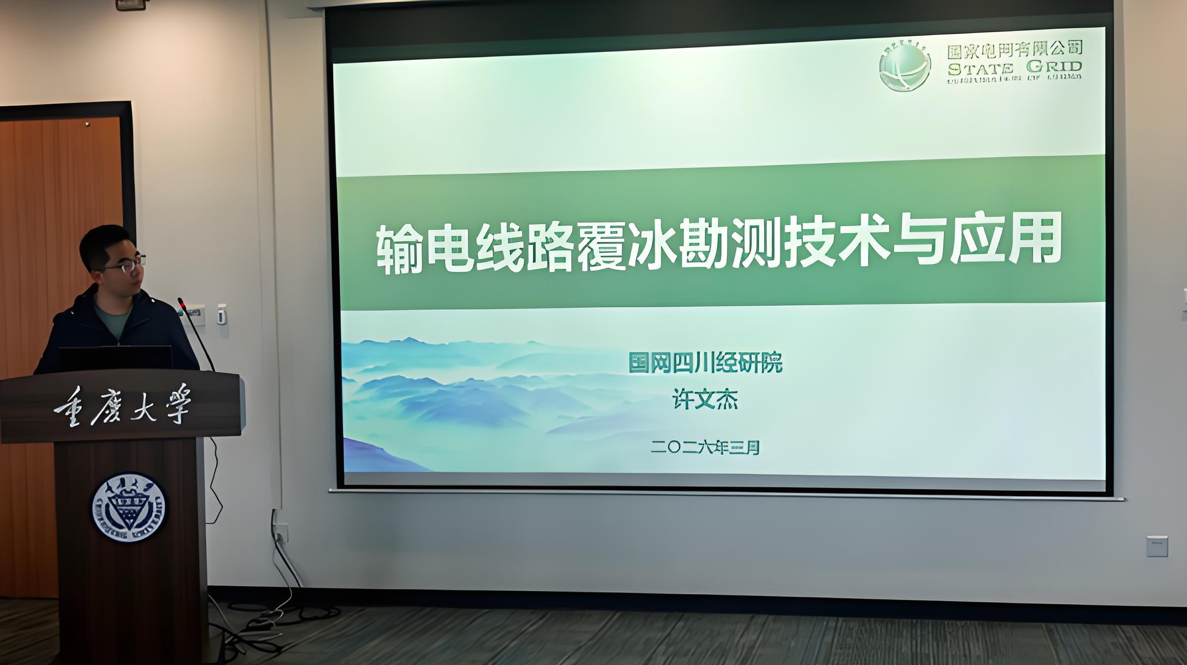 许文杰高级工程师以《输电线路覆冰勘测技术与应用》为题,立足川西及西藏地区清洁能源大规模送出需求,分析了清洁能源送出通道建设面临的挑战,特别是输电线路覆冰的危害与成因。围绕输电线路防覆冰差异化设计需求,他介绍了当前覆冰勘测相关技术及四川电网的实践工作。