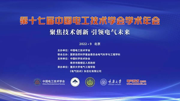 第十七届中国电工技术学会学术年会(ACCES 2022)由中国电工技术学会和国家自然科学基金委员会电气科学与工程学科联合主办,重庆大学电气工程学院和《电气技术》杂志社有限公司承办,并得到了中国科学技术协会和南京市鼓楼区人民政府的大力支持。